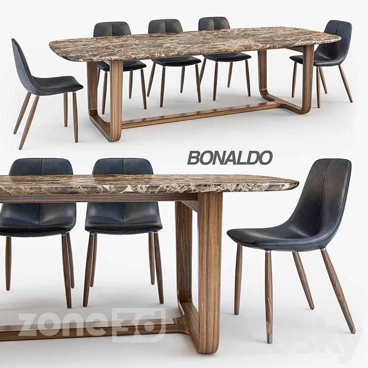 آبجکت معماری ست میز و صندلی برند Bonaldo چوبی با میز سنگی و پایه چوبی