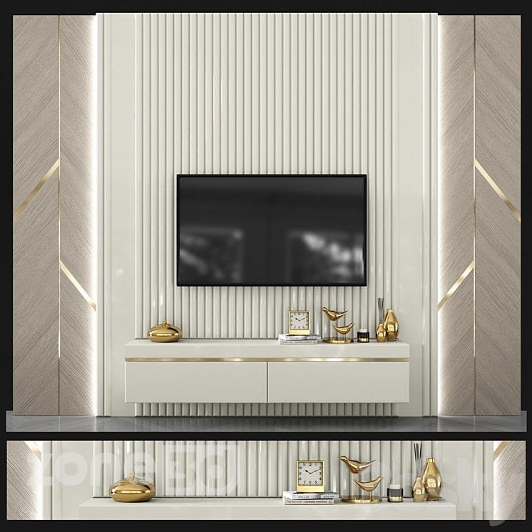 آبجکت معماری دیوار پشت تلویزیون به همراه اکسسوری در دو رنگ