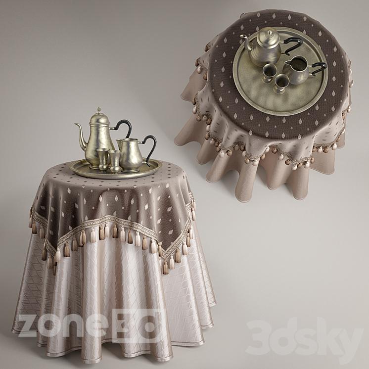آبجکت معماری میز پذیرایی گرد با رومیزی