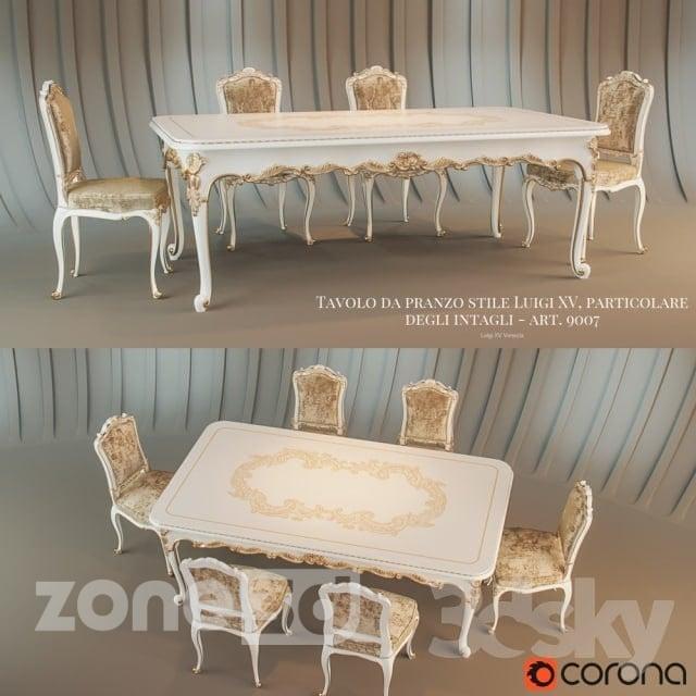 آبجکت معماریست میز و صندلی برندTavolo da pranzo چوبی با صندل های پارچه ای رنگ کرم